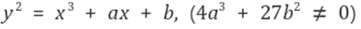 - 타원곡선이란 아래 식을 만족하는 그래프를 뜻하며, 판별식(영어로 discriminant)이 0이 아니어야 함
