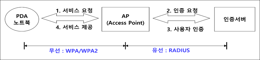 - WPA-EAP는 인증 시 PSK(Pre Shared Key)를 사용하지 않고 EAP를 사용
